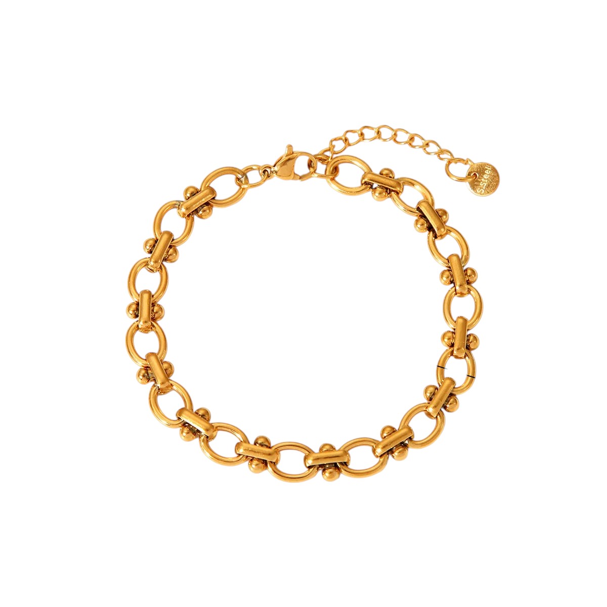 Le bracelet Gabby arbore une chaîne à maillons épais et audacieux qui se distingue par son style unique. Conçu pour celles qui apprécient les accessoires audacieux, ce bracelet apporte une touche d'audace et d'assurance à toutes les tenues, tout en garantissant durabilité et confort. Idéal pour sublimer les looks décontractés comme habillés, sa conception unique en fait un incontournable polyvalent de votre collection.