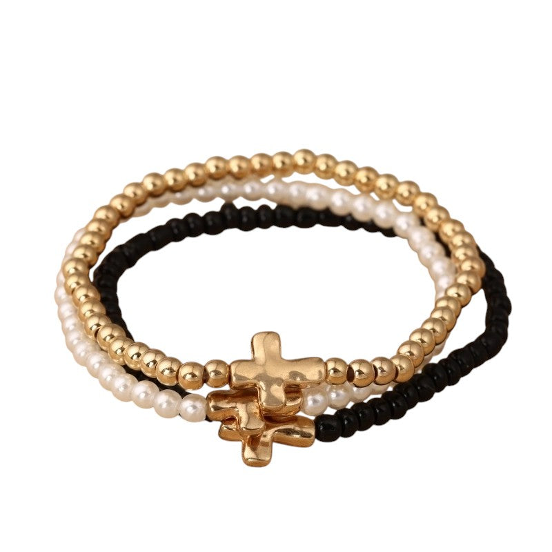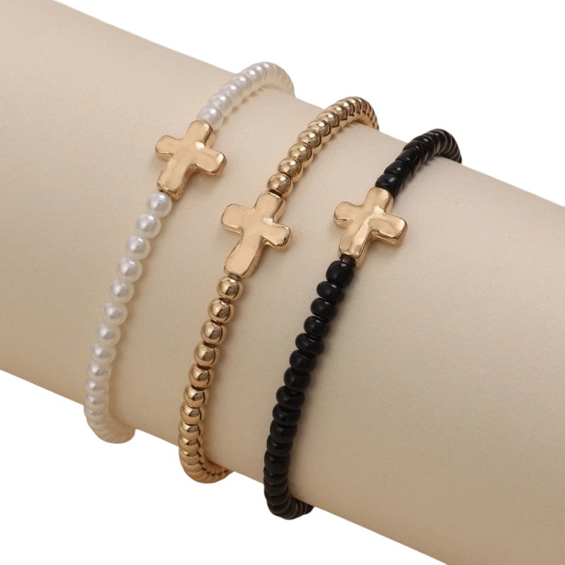 Embrace your love and faith with flair! This vibrant triple-colored beaded elastic bracelet features a charming cross or heart that speaks to your spiritual side, or simply adds a pop of personality to your wrist. Stretchy and comfortable for all-day wear, it's the perfect accessory for those who want to express their beliefs with style. Mix it with your favorite pieces or let it shine solo. A little reminder that you can be both faithful and fabulous!