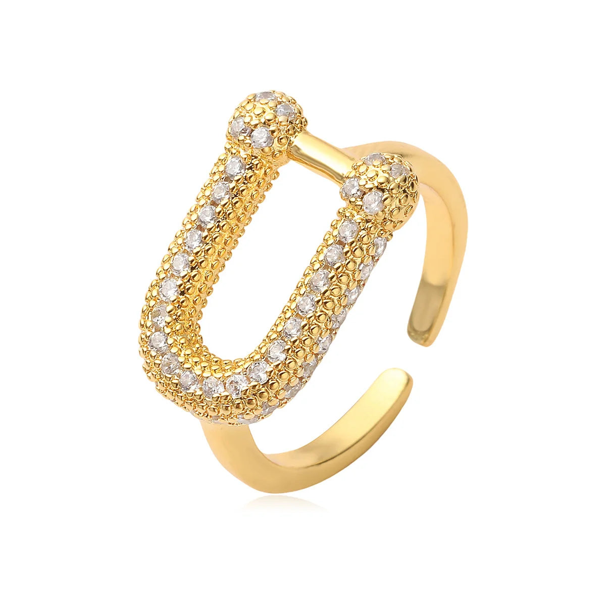 The Ursula ring sparkles with a playful charm, featuring a pave gem centerpiece framed by a unique U-shaped link design. Its one-size-fits-all style ensures effortless wear, perfect for those who shine in their own special way. As unique as you are, this ring adds a touch of fun elegance to any outfit.